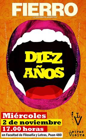 Con el pretexto de los diez años cumplidos de Fierro, Letras Vuelve, representación de graduadxs de la carrera de Letras de la UBA, rinde homenaje a la revista y la convoca a dialogar y debatir sobre las experiencias de este período transcurrido y los desafíos del futuro.