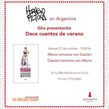 Este viernes 27 a partir de las 19 hs., Altuna y Casciari estarán brindando una charla y firmando ejemplares en el nuevo local de La Revistería, ubicado en Florida 719, pleno centro de Buenos Aires.