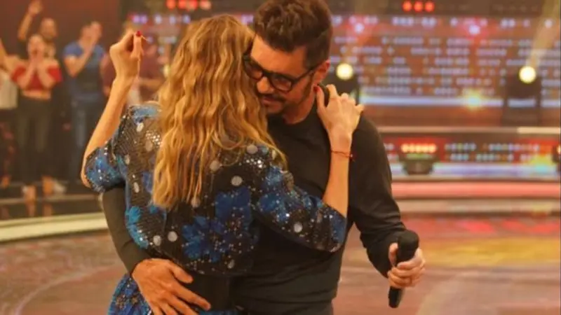 El conductor y su pareja estuvieron casi un minuto de la mano y hasta se dieron un beso apasionado que sorprendió mientras que el jurado, los participantes y hasta detrás de las cámaras se sumaron al momento y se divirtieron un rato gracias a la música que no paraba de sonar.