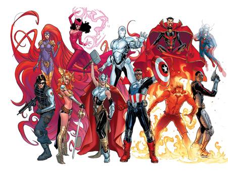 Y todavía sin autores anunciados, se viene el lanzamiento de Avengers NOW!, con los nuevos Thor, Iron Man y Capi America, más Scarlet Witch, Doctor Strange, Ant-Man, Winter Soldier, Angela, Deathlok y dos Inhumans: Medusa e Inferno.