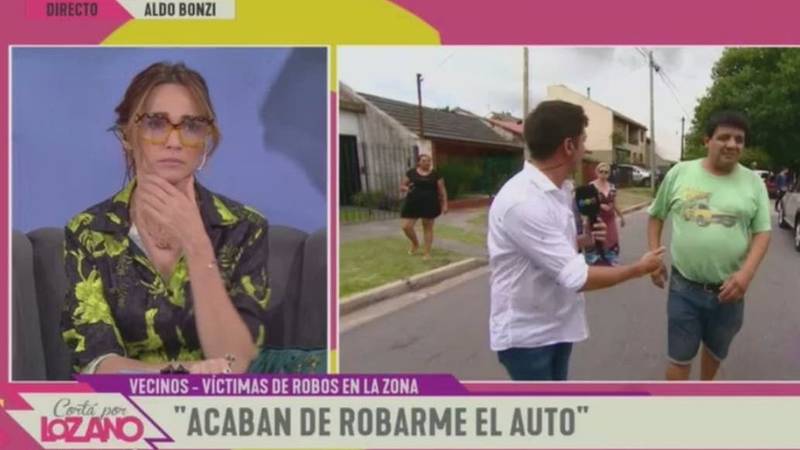 Verónica Lozano vivió un incómodo momento en su magazine Cortá por Lozano, y en las redes sociales capturaron el insólito suceso. En un móvil en Aldo Bonzi, localidad del partido de La Matanza, la conductora estaba escuchando atenta los testimonios de algunos vecinos sobre los hechos de inseguridad que sufren con regularidad y, justo en ese momento, ocurrió un asalto en vivo.Un hombre denunció que un delincuente se llevó su auto, luego de apuntarle con un arma y obligarlo a salir del vehículo.