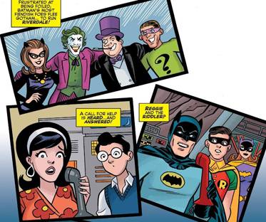 Claramente mientras salía la miniserie que mencionaba recién, la relación entre DC y Archie estaba en su mejor momento y no dejaron pasar la oportunidad para cranear otro encuentro, ahora sí entre Batman y Archie. Pero no cualquier Batman, si no que se trataría de Adam West. Y así es como en Julio de 2018 llega las bateas “Archie meets Batman ‘66” y parece ser la opción mas lógica. Ambos universos son super-compatibles, y ver al Riverdale versión ´66, es casi como ver el actual. Quizás hay mas minifaldas, no hay celulares y algunos detalles cosméticos más, pero la realidad de Archie Andrews es tan anacrónica que no se resiente para nada. Por el lado de Batman, no hay mucho que decir. El clima de la serie de los ´60 encaja perfecto con el mundo de Archie y esta historia se preocupa en traernos muchos de los mejores villanos de la serie.