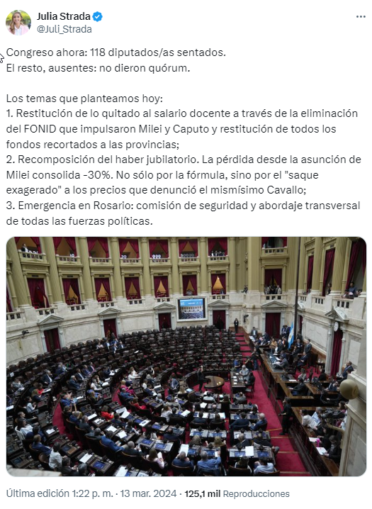 Al tiempo que en el Congreso avanzan iniciativas de ley para restituir el Fondo, recursos que la Nación transfiere a las provincias para mejorar los salarios de los docentes creado en 1998 y cuya vigencia se prorrogó año tras año a través de leyes y decretos, la secretaria general de la Confederación, Sonia Alesso, con el patrocinio de Marcelo Bustos Fierro, apoderado de la organización, reclamó en sede judicial que "se garantice que el Gobierno nacional abone el pago" del Fonid del 2023 y 2024, "a la fecha adeudados", informaron en un comunicado.