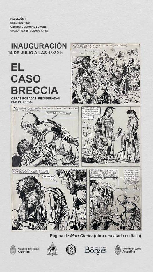Este jueves 14 a las 18:30 hs se inaugura en el Centro Cultural Borges (Viamonte 525, ciudad de Buenos Aires) la muestra El Caso Breccia, con originales del mítico maestro que habían sido robados en Europa y que logró recuperar Interpol.