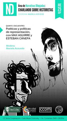 El prolífico y popular Max Aguirre y Esteban Canepa serán los próximos invitados en «Charlando sobre Historietas», el ciclo organizado por el Área de Narrativas Dibujadas de la Facultad de Ciencias Sociales de la UBA y el Espacio Juan L. Ortiz del Centro Cultural de la Cooperación.